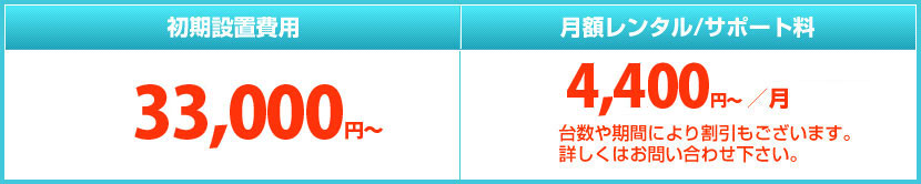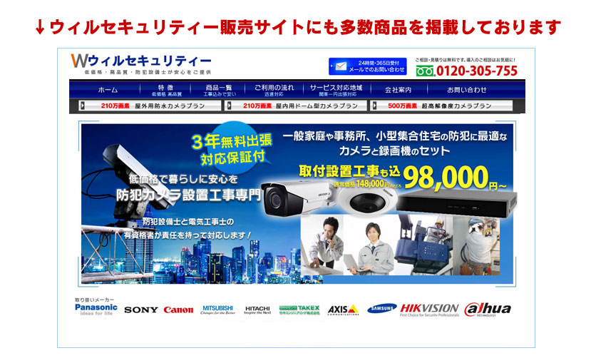 ■210万画素屋外用 ガンタイプカメラ 月額4,400円/1台 ■フルHD対応録画機 HDD2TB 月額5,500円/1台 ■フルHD21インチ液晶モニター 月額1,100円/1台 ※料金は税込表示です。 |