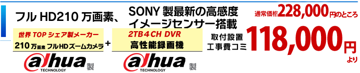 - > フルHDバリフォーカルレンズカメラ設置プラン(Dahua社製)